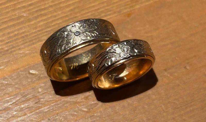 ▲8㎜幅 6㎜幅の桜手彫りリング存在感あります!